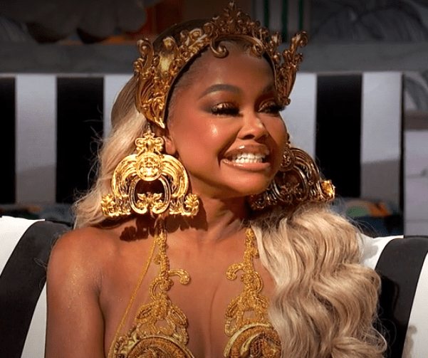 Phaedra looks like King Tut, wearing this cheap gold-tone ‘head piece.’ WHAT is she doing? And what did she do to her face?