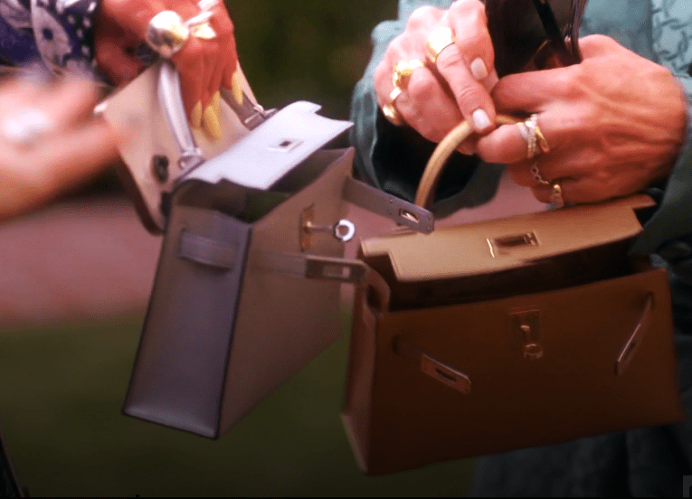 So these little Birkin bags Kyle and Dorit have, I made a post about why they’re always hanging open, and apparently if you can believe it, after paying $11,000 for a purse, you have to carry it hanging open, or the hardware gets scratched.