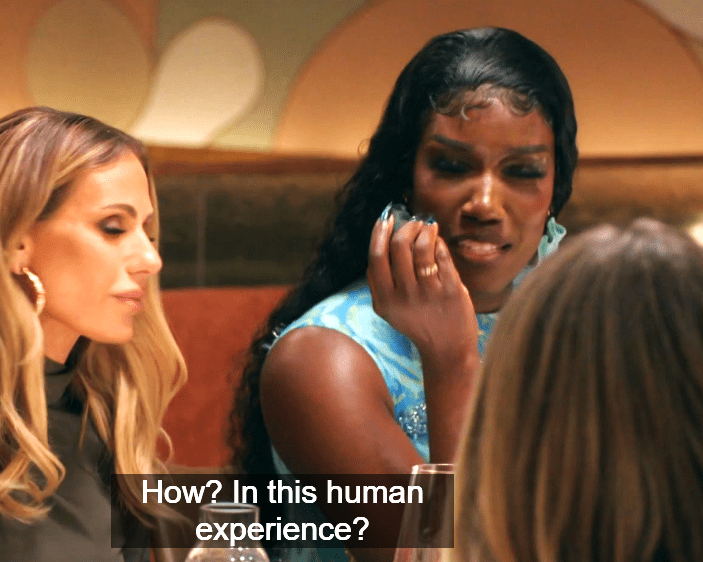 Dorit, Amanda didn’t say this was the worst experience of her life, she said she’s never left a dinner party in tears before. Jesus Christ, close your pie hole and listen.