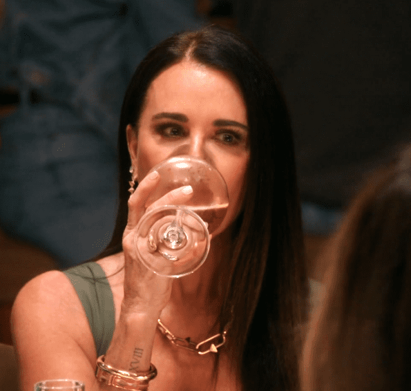 Kyle takes a drink, but you can see the subtle eye roll. She’s thinking the exact same thing. She’s probably a little stunned. The new girls always kiss her ass, except for that Carlton vampire chick. Who was gone after one season. She used to make fun of Kyle for being dumb. It was hilarious.