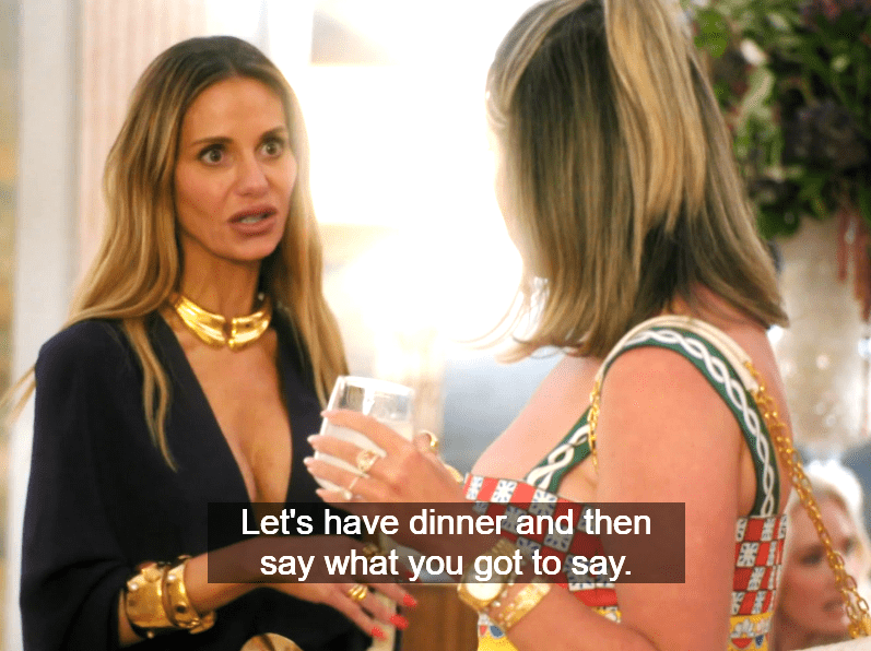 Okay Dorit, number one, Boz didn’t cook the fucking dinner, and number two, Amanda wasn’t suggesting you miss dinner entirely. At all. There was time to talk before the food started arriving.