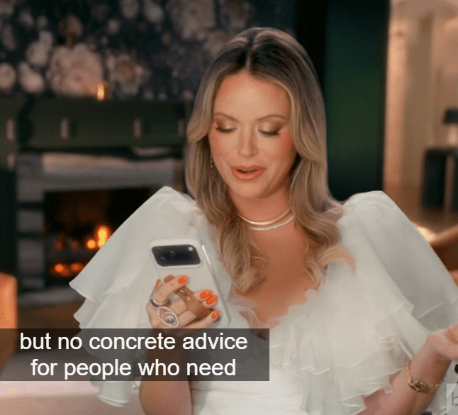She tells Amanda that Boz and Erka were being messy, and asked ChatGBT about her reviews or whatever, and the robot didn’t really have anything positive to say.