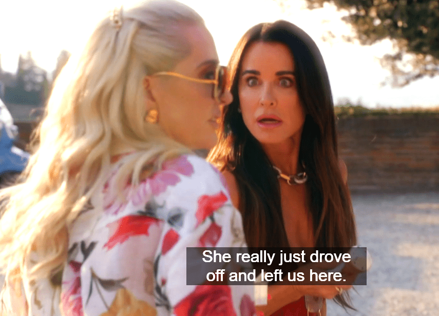 Dorit doesn’t appreciate Erika’s input, so she storms off to the vehicle, in which there were TWO parked side-by-side, however somehow poor Kyle and Erika Pain were stranded for an entire 26 minutes!! Allegedly!!!