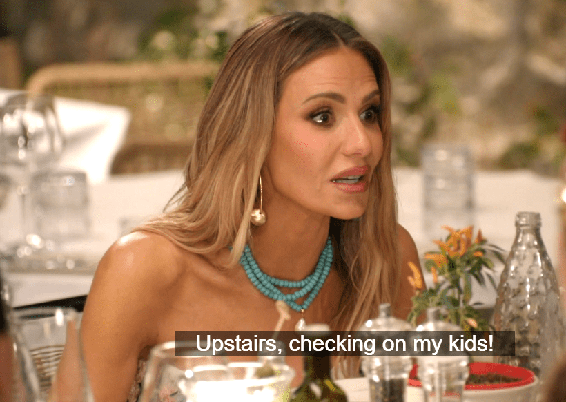 Erika’s not having this. Dorit looks a little defeated for a moment. She really thought she was going to get by with ‘I was checking on my kids.’ For four hours.