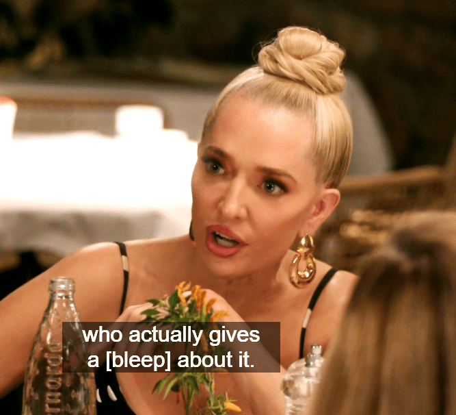 Erika is across from Dorit muttering that she just thinks she’s just overwhelmed. But later she attacks her tardiness, so I’m confused.
