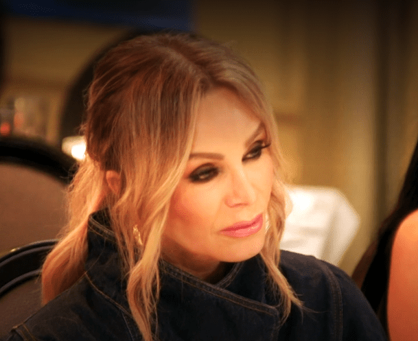 Tamra who claimed she wouldn’t be drinking this season seems tipsy and dinner hasn’t even gotten started yet. She pulls Gretchen to the side to ask if she should bring this topic up.