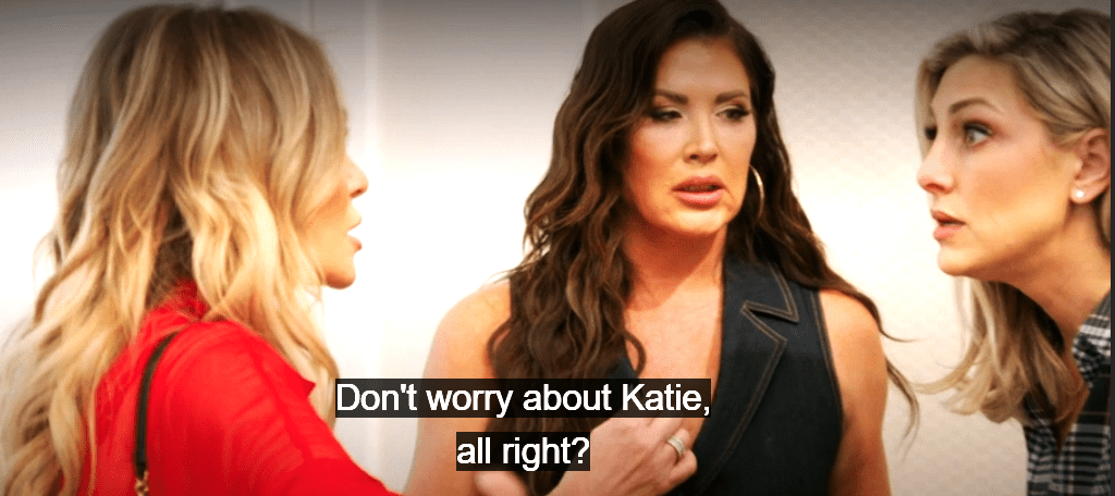 Tamra starts whining about Katie, and Gina tells her ‘we got her’ in sort of a mafia kind of way like she’s going to take her out.