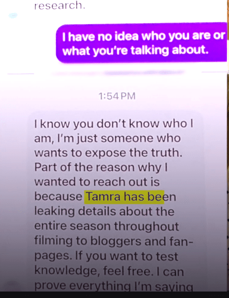 So a twist. After filming, the ladies started getting messages from people telling them Tamra has been leaking info during filming.