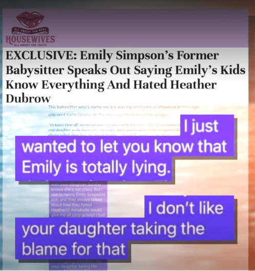 They rehash last season’s babysitting issue. Namely, when her young adult daughter was watching Emily’s kids, and they said they didn’t like Heather.