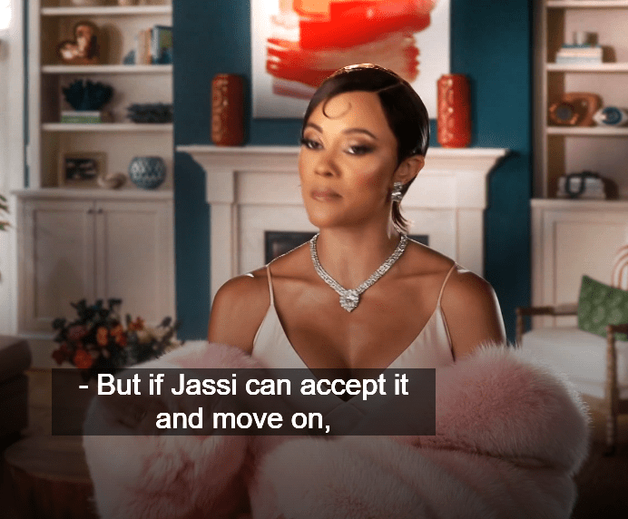She tries to tell Jassi she was actually still pissed off previous night when she actually came off quite jovial after she called out Gizelle for being a rude bitch.