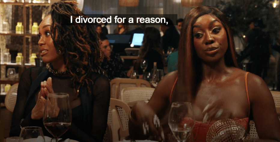 Charisse, who’s back again, she just won’t go away, calls Chris and asks him if Stacey told him what Monique had said about in regards to why she divorced him.