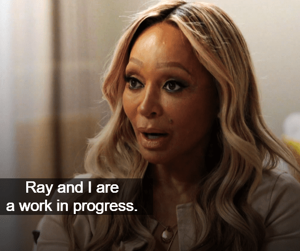 She eludes to a possible split between her and Ray. It seems weird for him to stick around at this point when it’s pretty evident she’s been cheating on him for many years. I don’t know, maybe he doesn’t care??