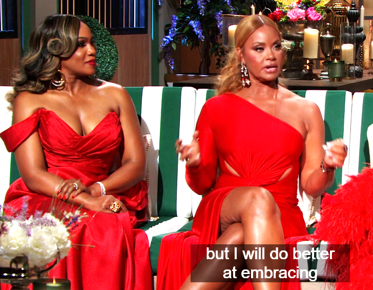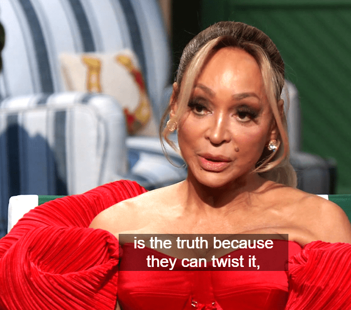 I don’t know what this ‘package’ thing is about but apparently Gizelle didn’t get one, and she sees she could be on the chopping block for never sharing nor showing vulnerability. Shee starts this marathon diatribe about what’s ‘going on in her life.’