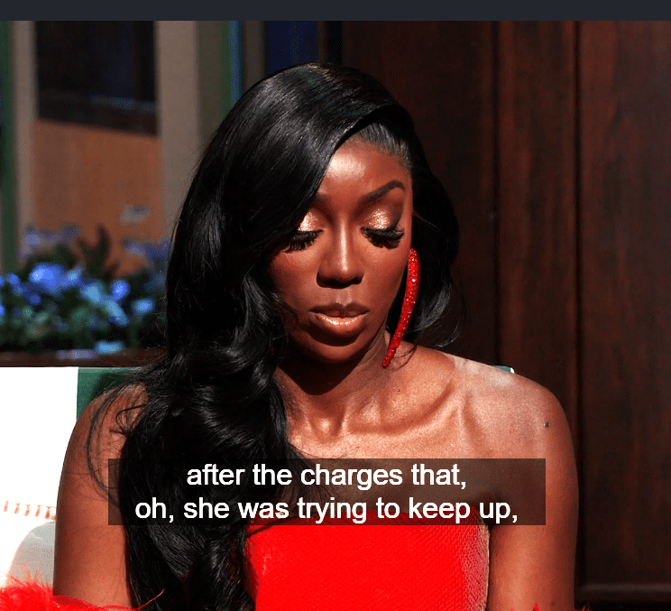 She contradicts herself saying she “hasn’t been in contact with Chris” however she showed Monique a text message he had sent her earlier in the season, when she was trying to prove he was sort of chasing after her, and she was declining.