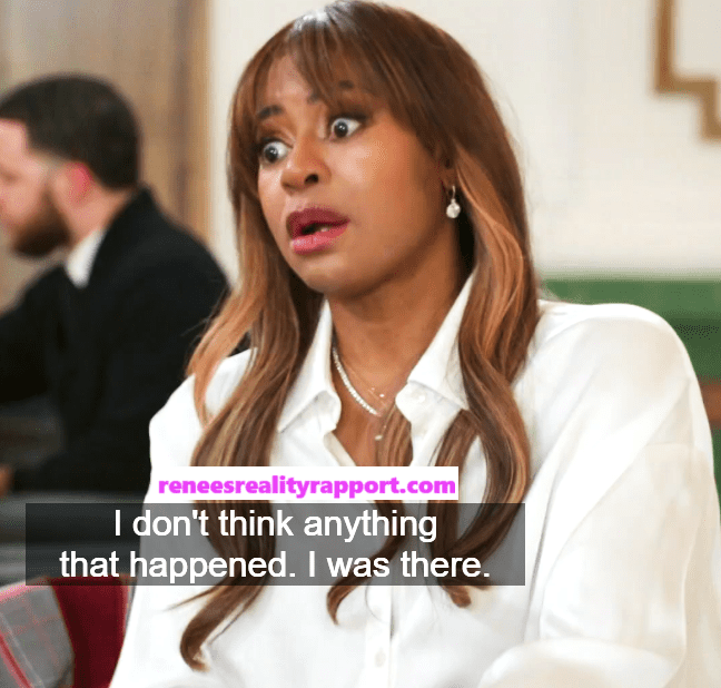 Meredith and Lisa are so funny. They literally are pretending the ladies are getting second-hand info and seem to be forgetting they were all witnesses. Like how much wine were they drinking?