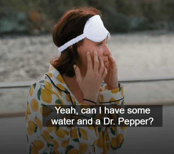 What is with her obsession with Dr Pepper? That’s even her morning caffeine? At lease she acknowledges it’s weird.