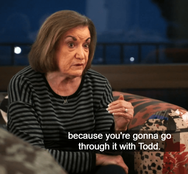 Maybe I do mean to be unkind. Did you catch her low-key calling Bronwyn out for being a gold digger? And that she would’ve been living in a gutter, had it not been for Todd.