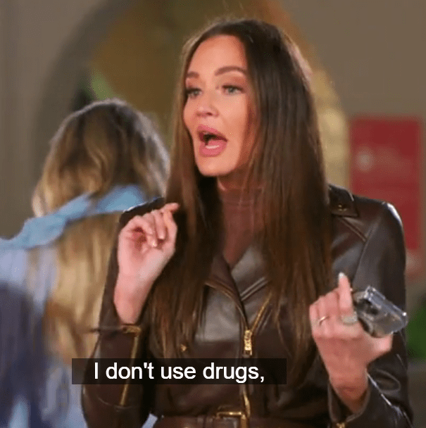 In her yap she doubles down that she doesn’t drink as much as most of the others, Britani has a pill habit, and she also eludes to Heather’s alleged alcohol-poisoning-stomach-pumped issue from last season that’s coming out now via a pissed off Monica Gonzalez.