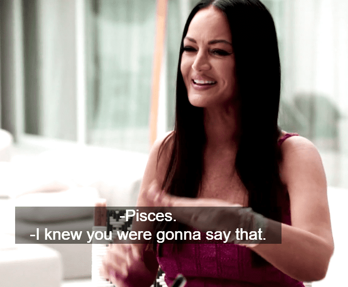 She wanted to know the playwright’s birth sign, and goes through literally almost all of the signs and then when she tells her she’s a Pisces, she claims she knew she was going to say that.
