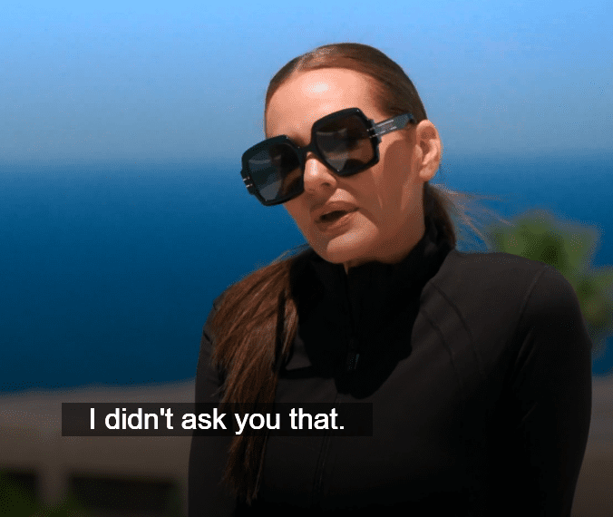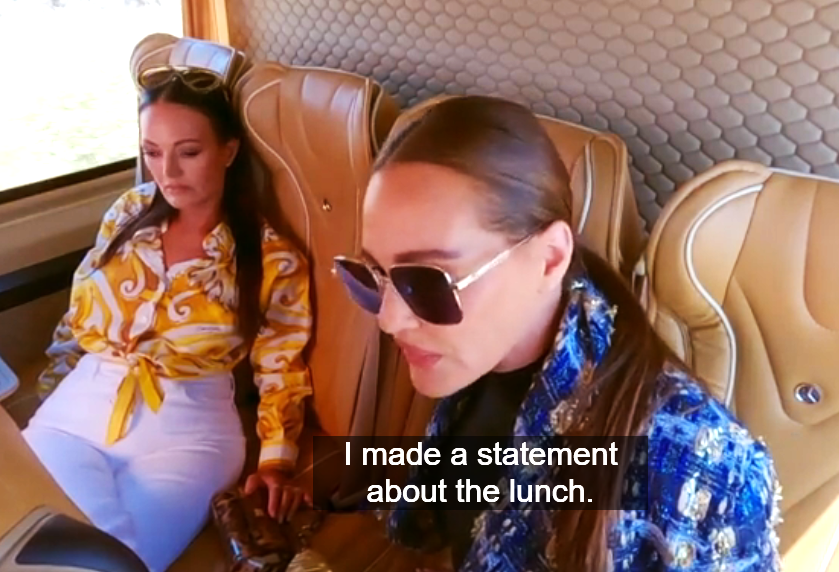 Meredith gets whiny in the van heading back from lunch, telling Lisa she doesn’t understand ‘why she’s here.’ Bronwyn starts spilling the tea on what they discussed and disagreed on. What’s Housewives if they don’t piss moan and cry in the sprinter vans everywhere they go?