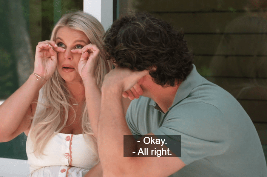 Madison and her poor sap also purchased a new home. She said a lot of nothing, then pretends to cry when Brett mentions her late father. I didn’t see a tear. Neither does Brett but he’s too nice to say so.