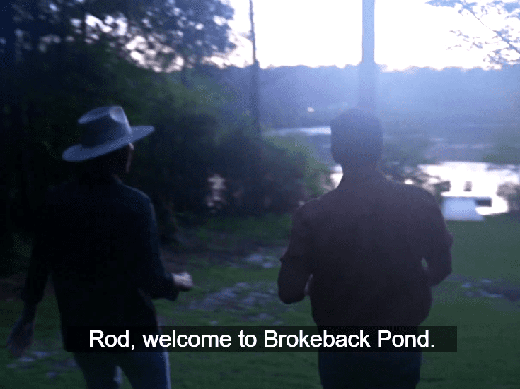 Austen whines about a pimple. Rod gives him a ‘kooky hat.’ OMG. They head out to the romantic dock area in the breathtaking twilight, and Austen makes a ‘Brokeback Mountain’ joke. Supposedly a joke.