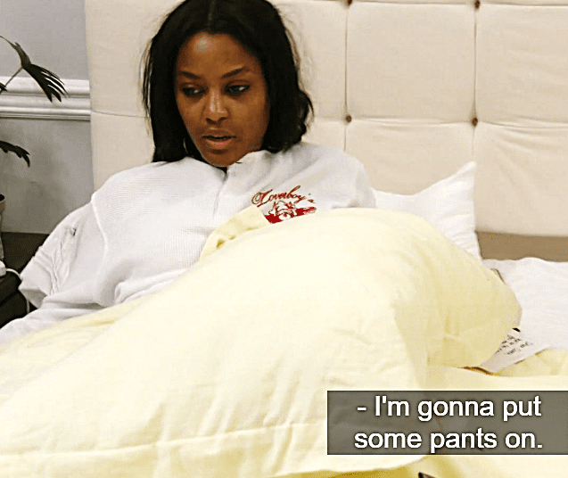 So she’s in bed in very modest sleepwear that was covering her body, then chooses to change into the most skimpiest PJ set imaginable, to go downstairs to join the crew for breakfast.