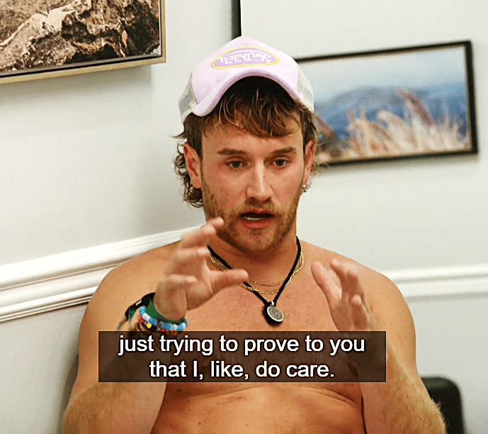 In her yaps, Ciara always acts so annoyed with the ongoing messy back and forth of flirting and getting along, then being mad at him when he doesn’t follow these ‘rules’ she put in place. Any other normal guy would tell her to fuck off.