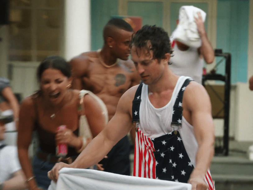 Of course this Ben guy is in the pool, so yeah, there’s that. Everyone else jumped in with their clothes on but Amanda for some reason couldn’t. Don’t think she was wearing silk, or leather.